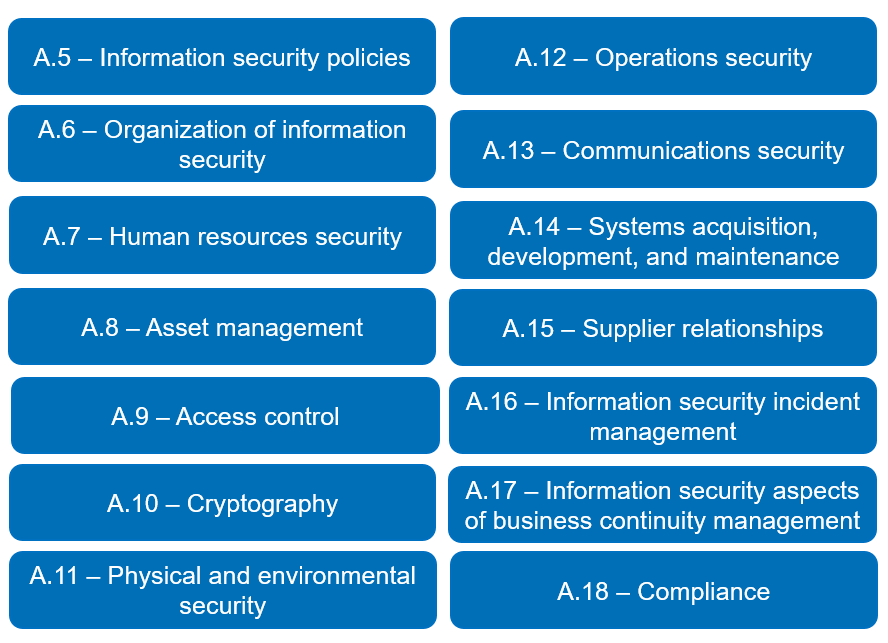 Figure 1 ISO 27001:2013 Annex A controls A.5 - A.18